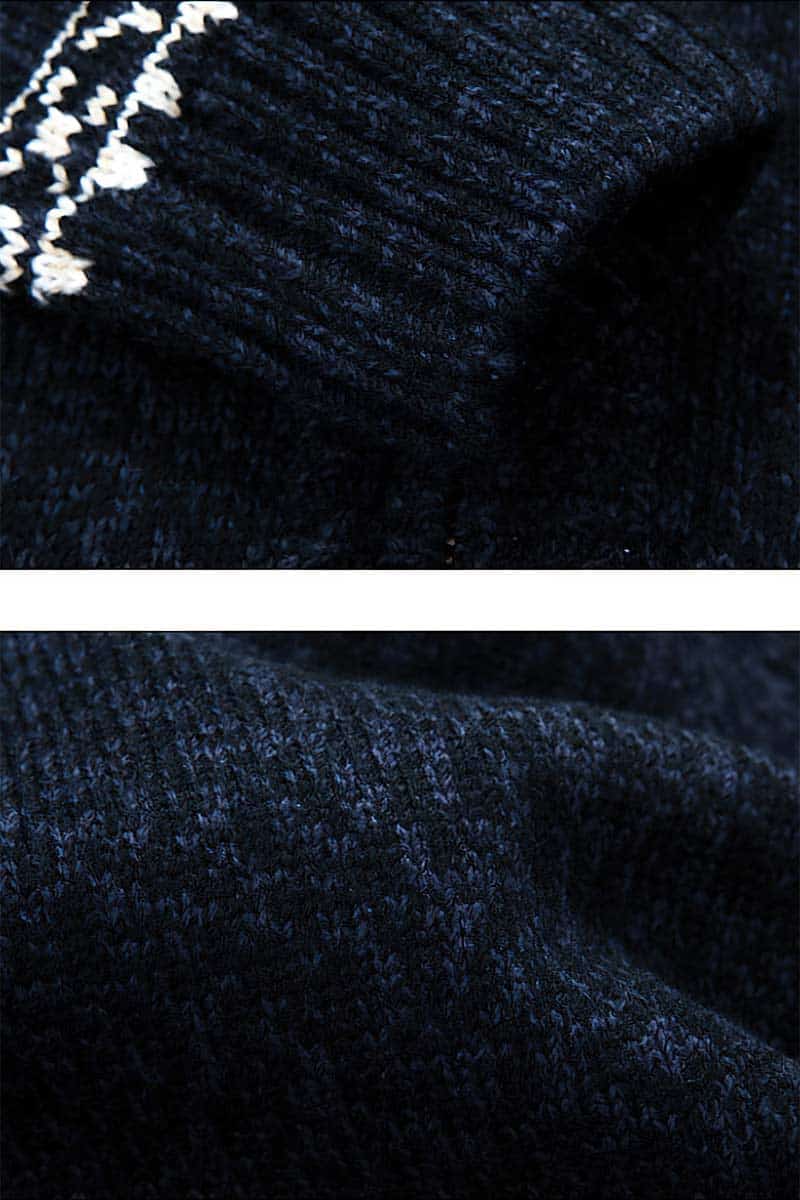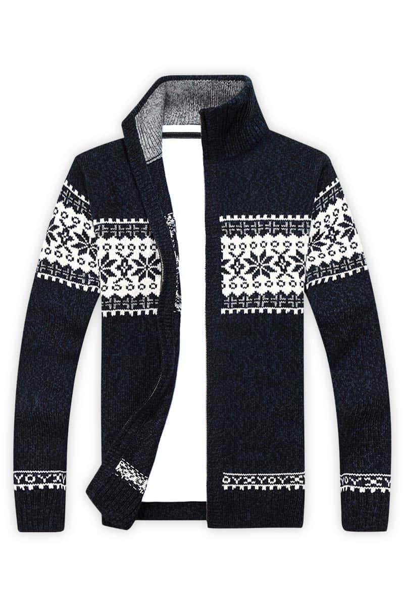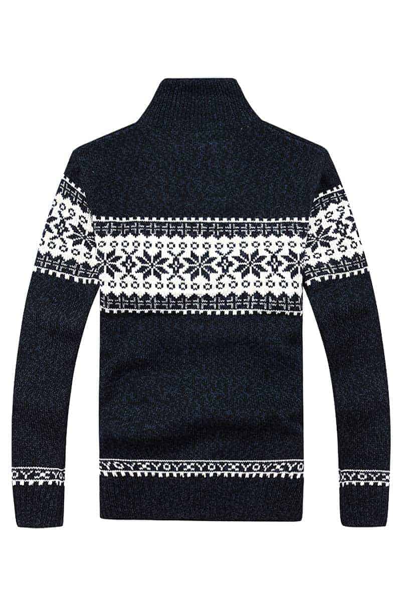 Élégant cardigan noir au style norvégien traditionnel, rehaussé de motifs géométriques blancs qui évoquent la magie de l’hiver. Sa coupe ajustée et son col montant offrent une silhouette raffinée, tandis que sa fermeture zippée assure un confort optimal. Un incontournable des fêtes disponible jusqu’au 5XL, aussi élégant pour une soirée de Noël qu’une journée décontractée.