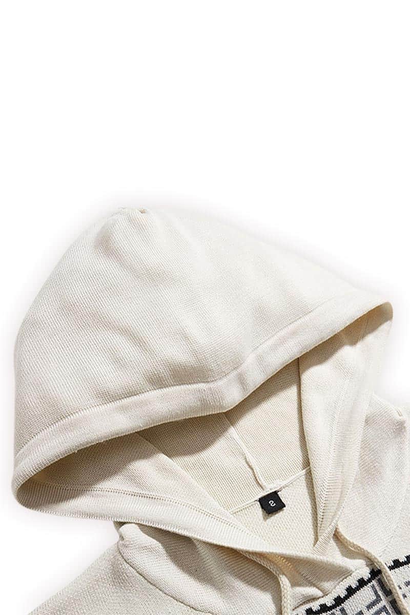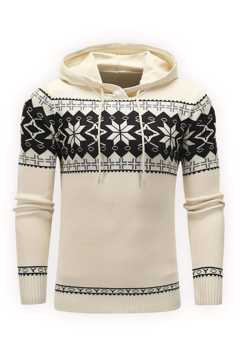 Esprit nordique et élégance pour ce pull à capuche beige aux motifs hivernaux. Sa maille fine et sa coupe ajustée offrent un style contemporain, sublimé par des flocons de neige et des motifs géométriques. Parfait pour les festivités, ce pull allie confort et style festif. Du S au XXL.