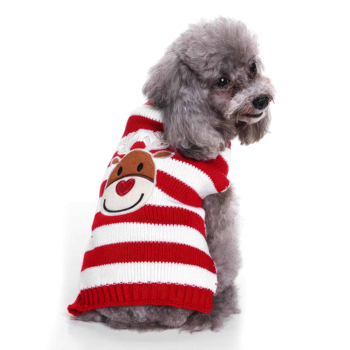 Pull chien rayé rouge & blanc Rudolphe Renne de Noël