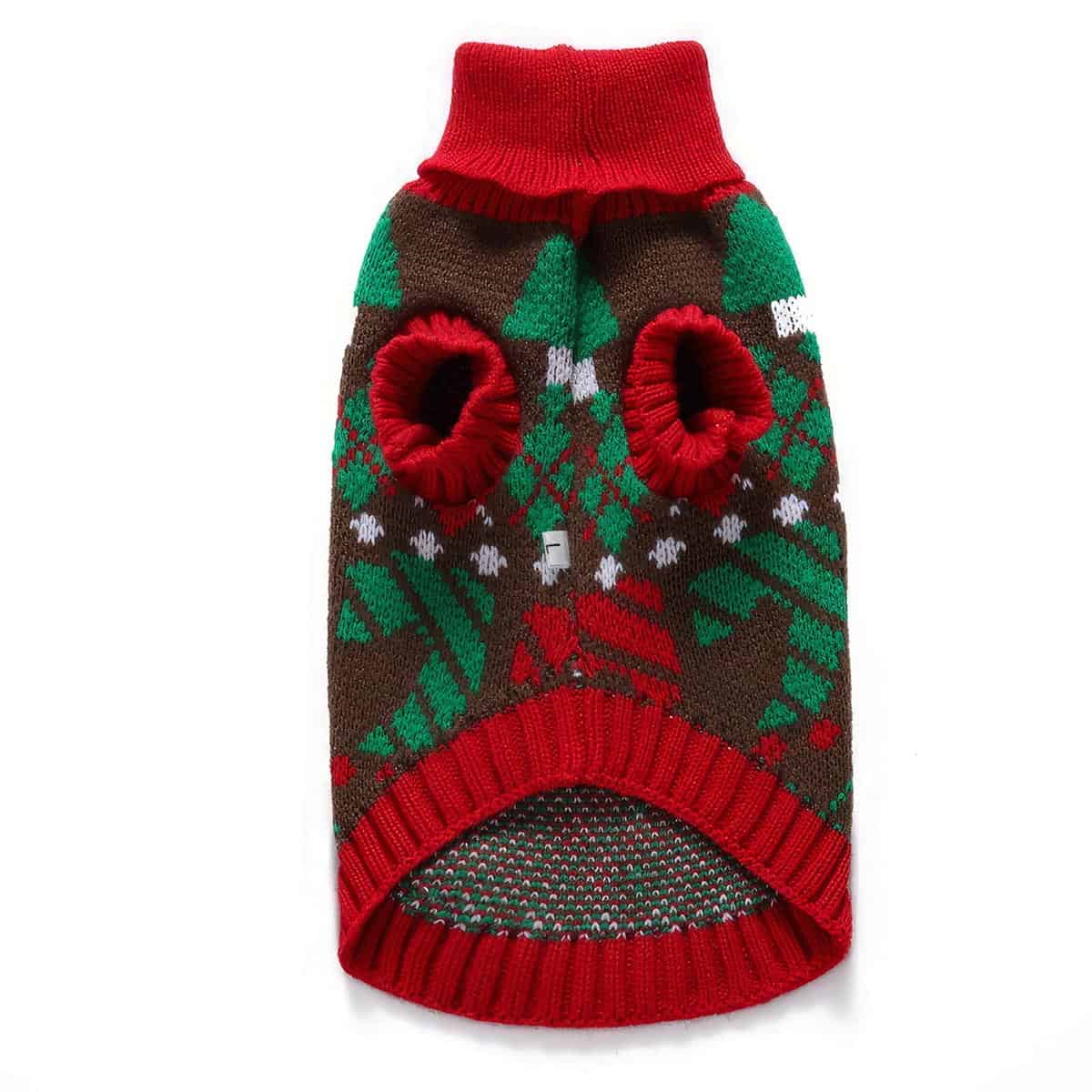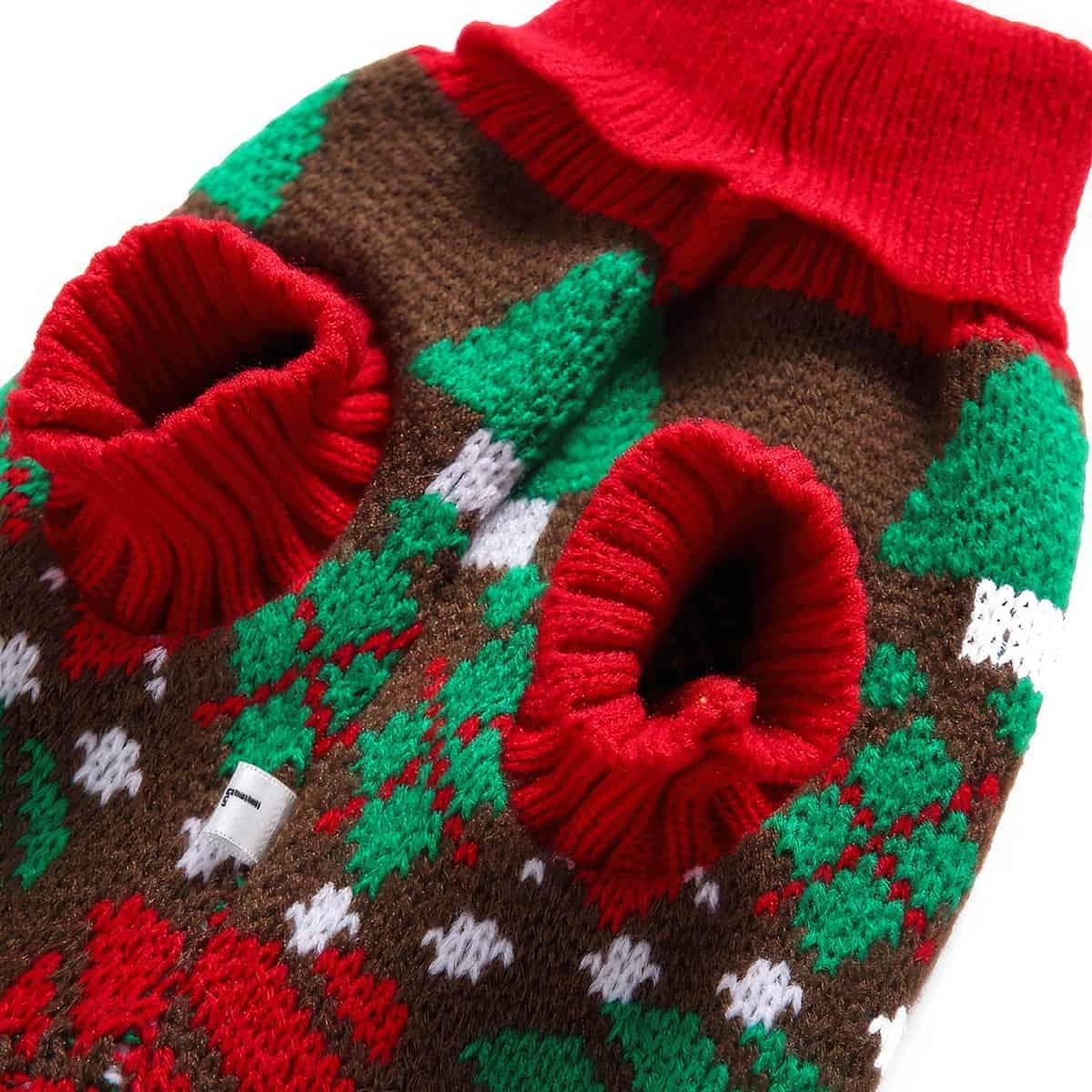 Le pull se distingue par son col montant protecteur et ses manches longues adaptées aux pattes avant, offrant une protection optimale contre le froid hivernal. Les motifs traditionnels de Noël, inspirés du style écossais, créent une atmosphère chaleureuse et festive, idéale pour les photos de famille pendant les célébrations de fin d’année.