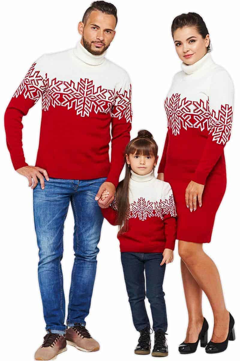 Pull de Noël Couple Flocons de Neige Rouge & Blanc