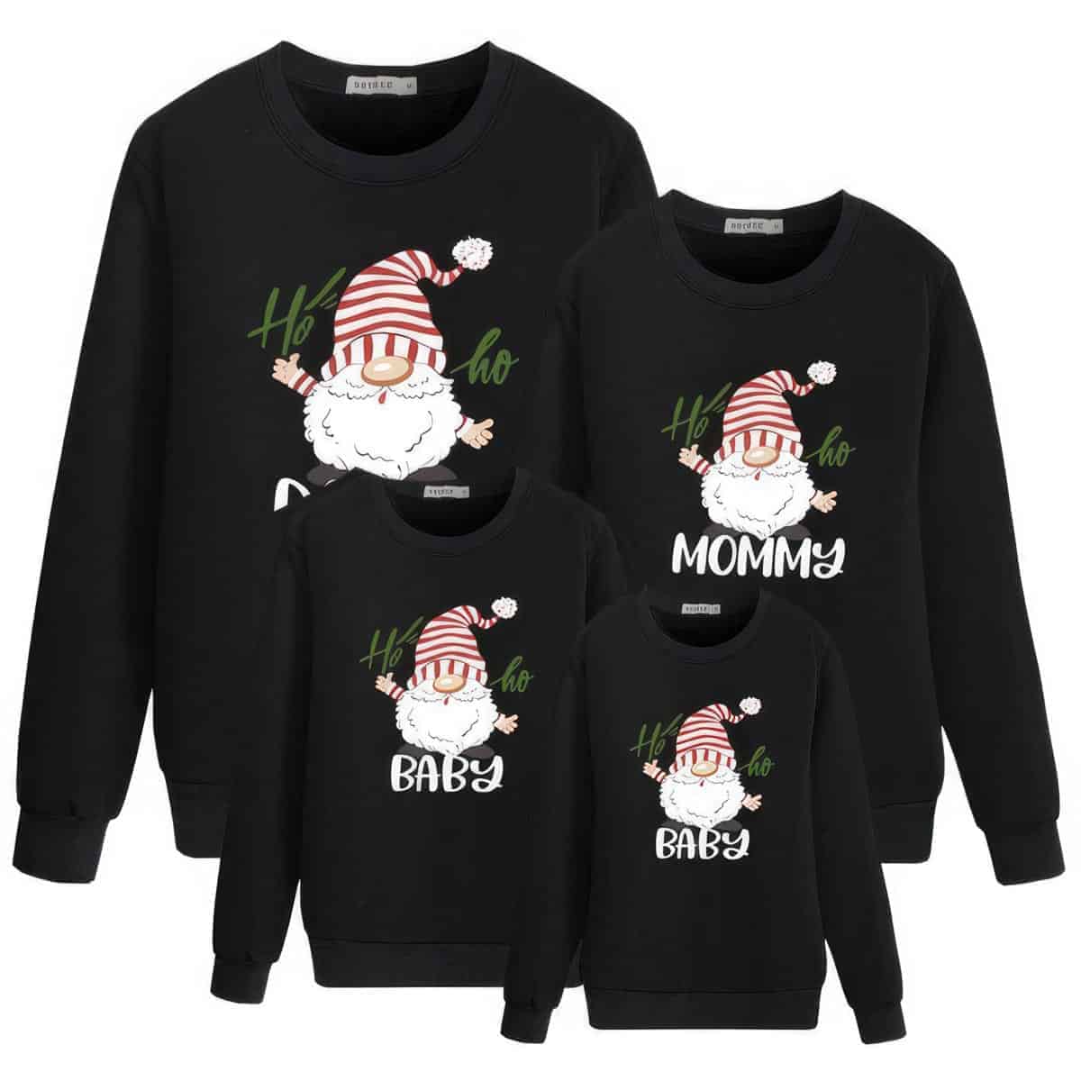 Créez des souvenirs magiques en famille avec ce pull de Noël noir coordonné. Un adorable gnome festif et l’inscription « Ho Ho Ho » personnalisée pour chaque membre de la famille illuminent ce pull confortable à col rond. Disponible pour papa, maman et enfants, il allie style festif et chaleur hivernale pour des moments complices inoubliables. Tailles adultes S-3XL et enfants 12M-8ans.