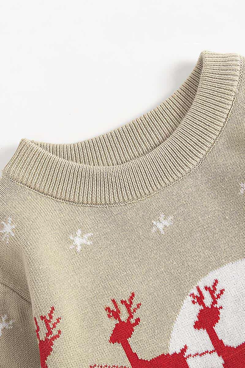 Idéal pour les célébrations de Noël en famille, les photos souvenirs ou les journées spéciales à l’école, ce pull traverse les saisons hivernales avec élégance. Sa palette de couleurs neutres centrée sur le beige en fait un choix versatile qui s’accorde facilement avec le reste de la garde-robe.