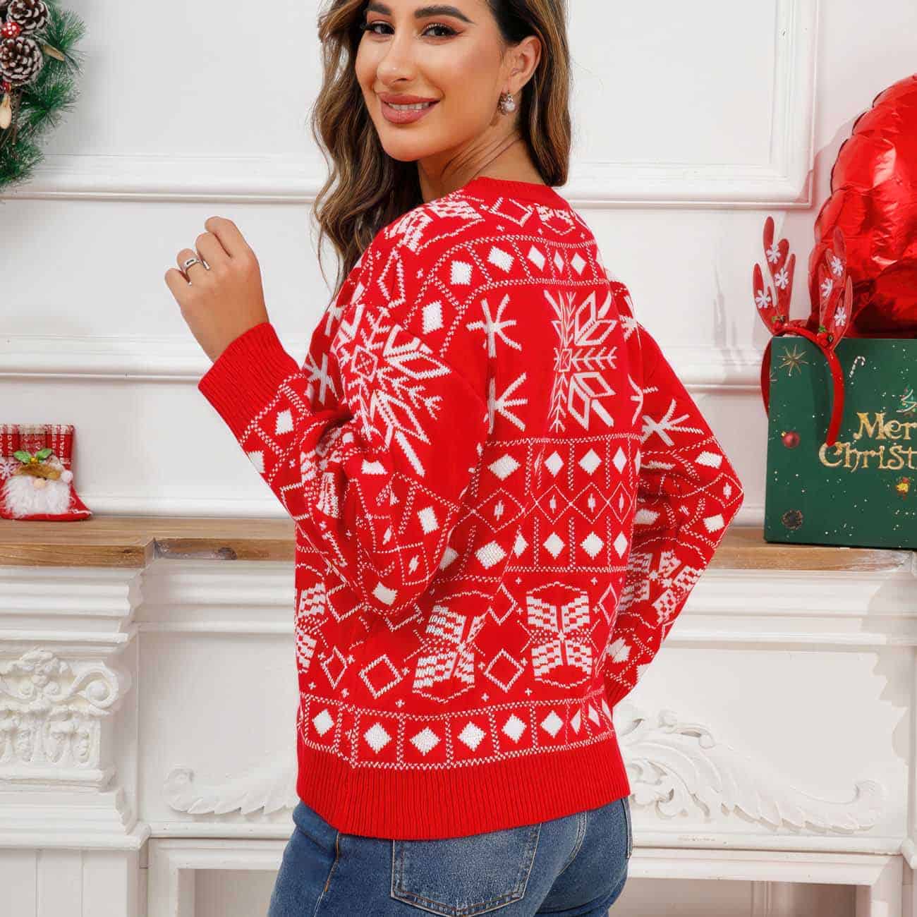 Idéal pour les réunions familiales, les soirées du réveillon ou les photos de fêtes, ce pull de Noël sublime aussi bien un jean casual qu’une jupe élégante. Sa polyvalence en fait un choix parfait pour tous les événements festifs de décembre, des marchés de Noël aux dîners entre amis.