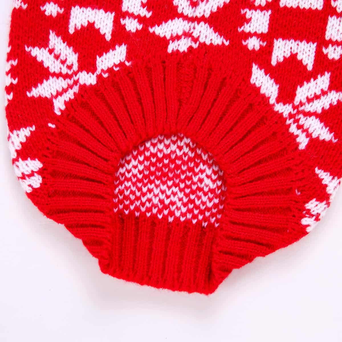 La capuche fixe ajoute une touche de style supplémentaire tout en protégeant les oreilles sensibles durant les fraîches journées d’hiver. Le motif de flocons de neige blancs se détache magnifiquement sur le fond rouge vif, créant un contraste parfait pour vos photos de Noël en famille. La fine maille assure une tenue impeccable sans surcharger votre animal.