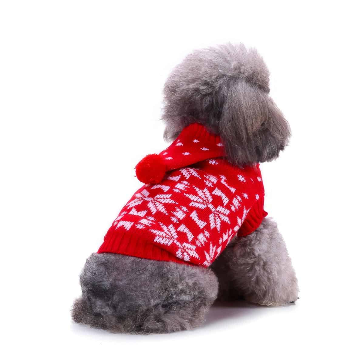 Adorable pull de Noël pour votre compagnon à quatre pattes ! Ce modèle rouge à capuche, orné de flocons de neige blancs, apportera une touche festive à vos photos de fêtes. Sa coupe ajustée sans manches assure confort et liberté de mouvement. Disponible en 5 tailles, parfait pour chiens et chats. Idéal pour les célébrations hivernales !
