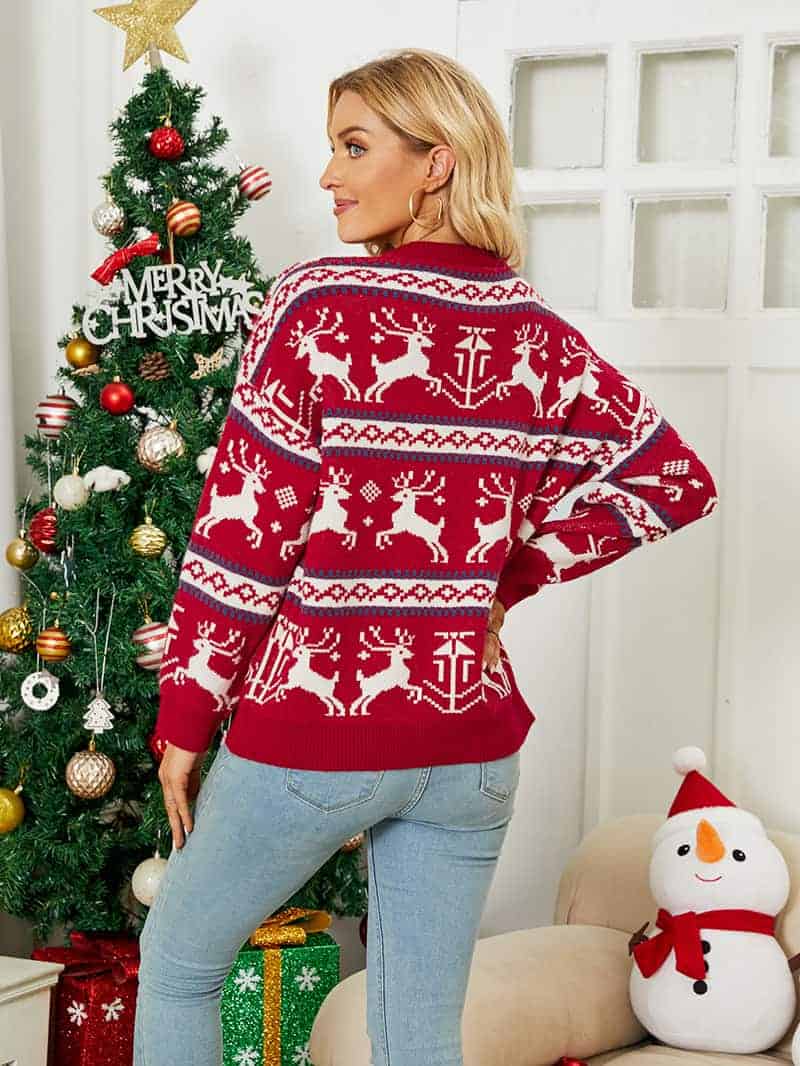 Parfait pour les réunions familiales de Noël, les soirées entre amis ou les célébrations au bureau, ce pull de Noël allie harmonieusement tradition et style contemporain. Il se marie idéalement avec un jean pour une tenue décontractée ou une jupe pour un look plus habillé.