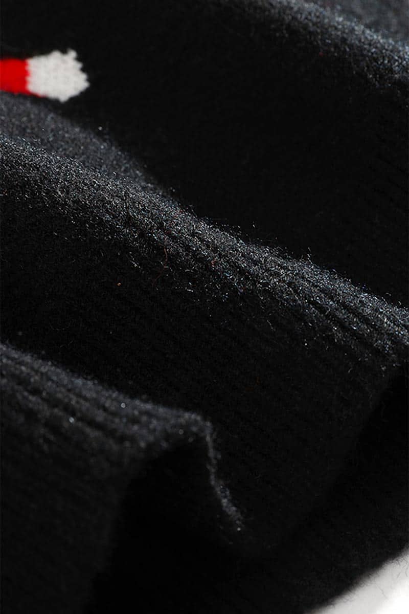 Les motifs enchanteurs parsèment le pull avec délicatesse : des Pères Noël aux détails soignés, des bonhommes de neige jovials coiffés de chapeaux rouges, et des cannes à sucre traditionnelles s’entremêlent avec grâce. Des flocons de neige blancs complètent cette composition festive, rappelant la magie d’un Noël enneigé.