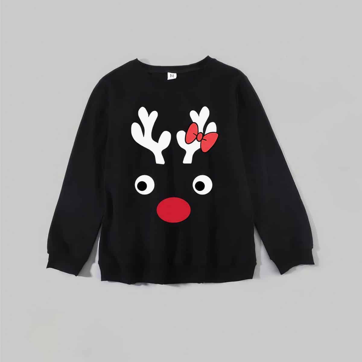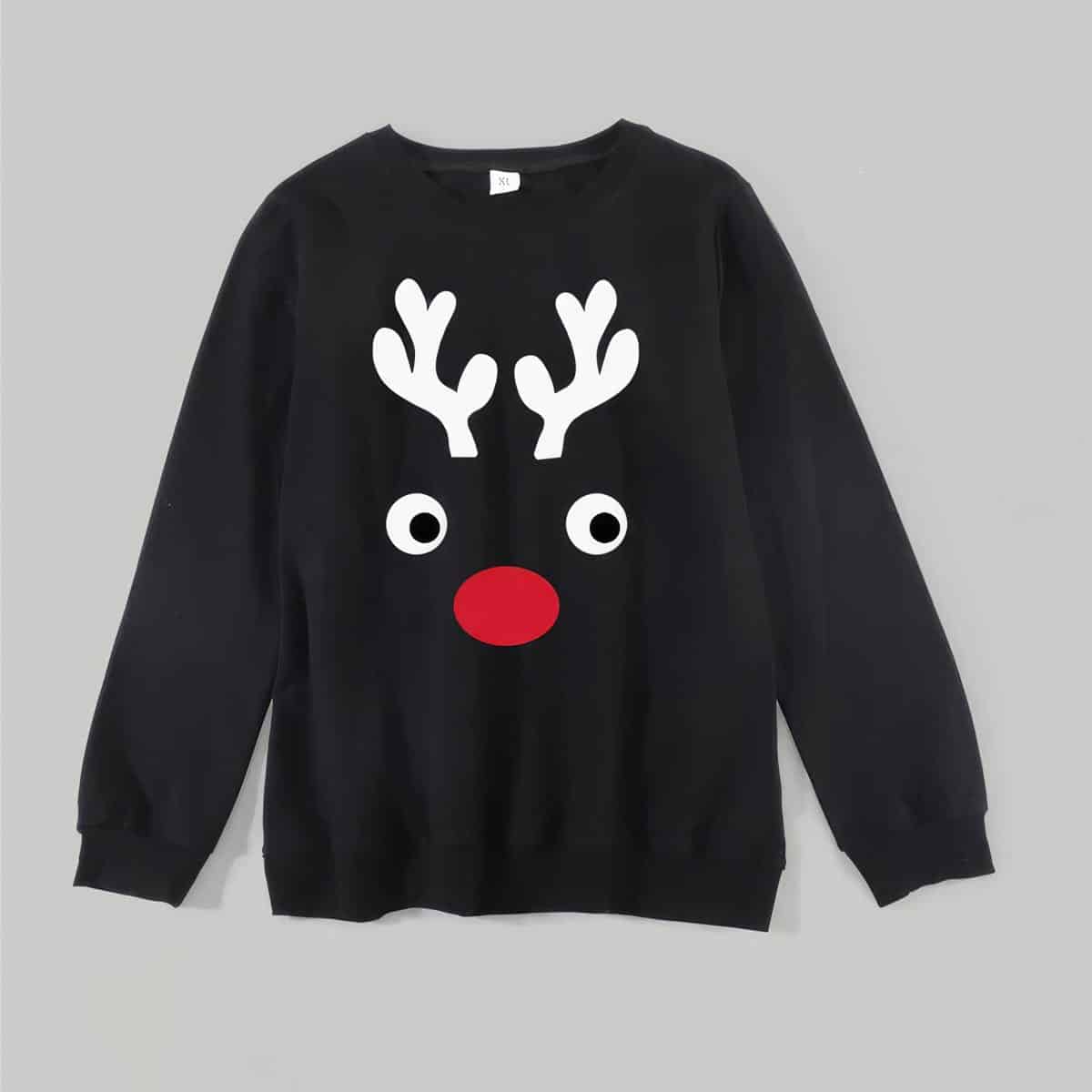 Idéal pour les photos de famille, les repas de fête ou les soirées au coin du feu, ce pull de Noël devient rapidement un indispensable des célébrations hivernales. Son design noir classique avec le motif de renne traditionnel s’harmonise parfaitement avec tous les styles vestimentaires, créant une unité visuelle parfaite pour vos portraits de famille.