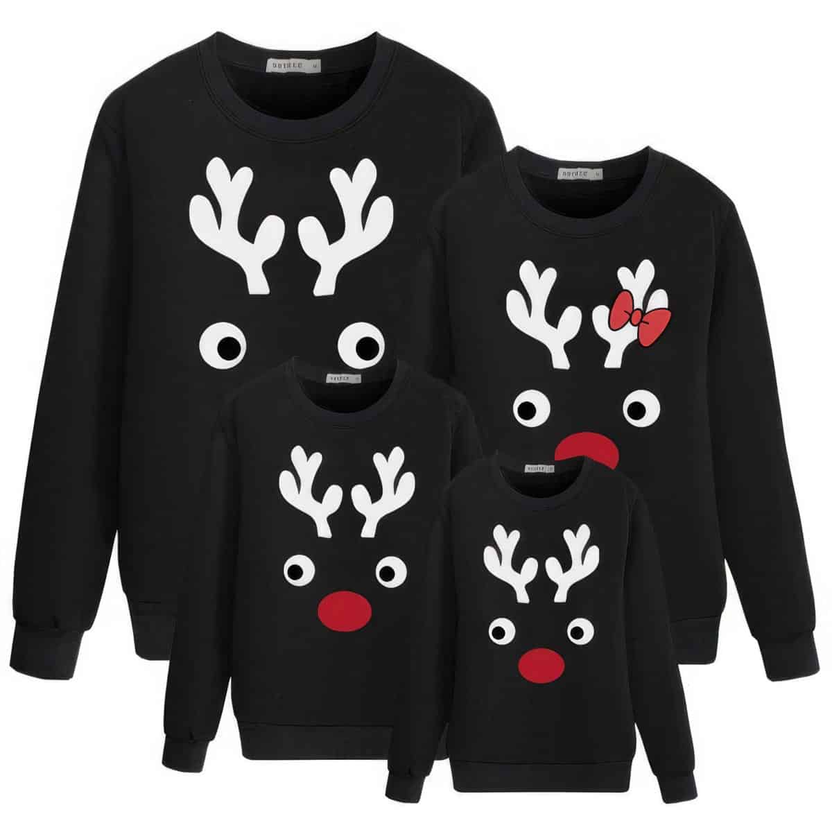 Créez des souvenirs magiques en famille avec ce pull de Noël noir emblématique. Son adorable motif de renne au nez rouge illuminera vos fêtes. Disponible pour toute la famille, du 12M au 3XL, sa coupe classique et confortable s’adapte à tous. Le parfait look assorti pour vos photos de Noël et moments chaleureux en famille.