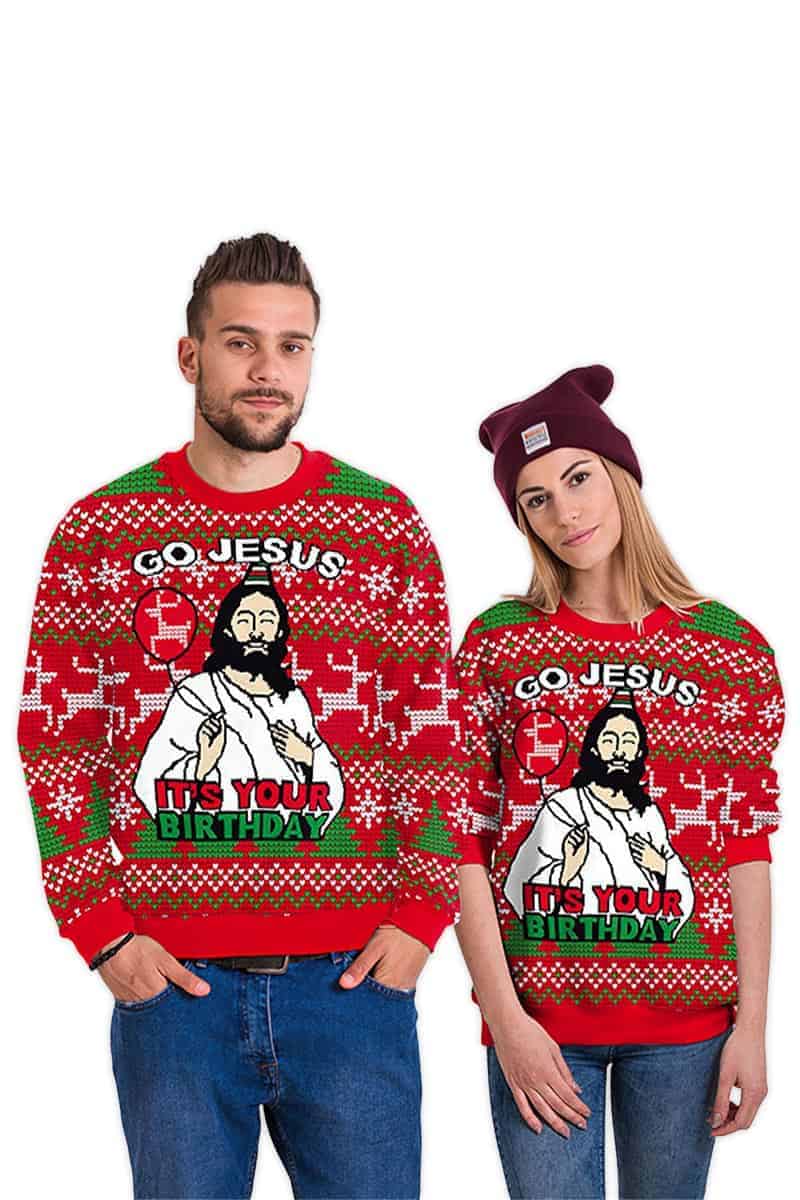Sweat Rouge Noël « Go Jesus it’s your birthday »